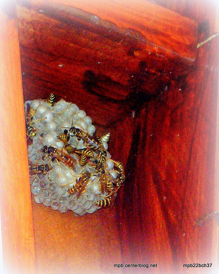 Guêpes au dessous d'un toit, tissant un collier de perles d'une patte alerte, modulant de sa bouche toutes ses touches, mettant bien à l'abri, leurs petits.