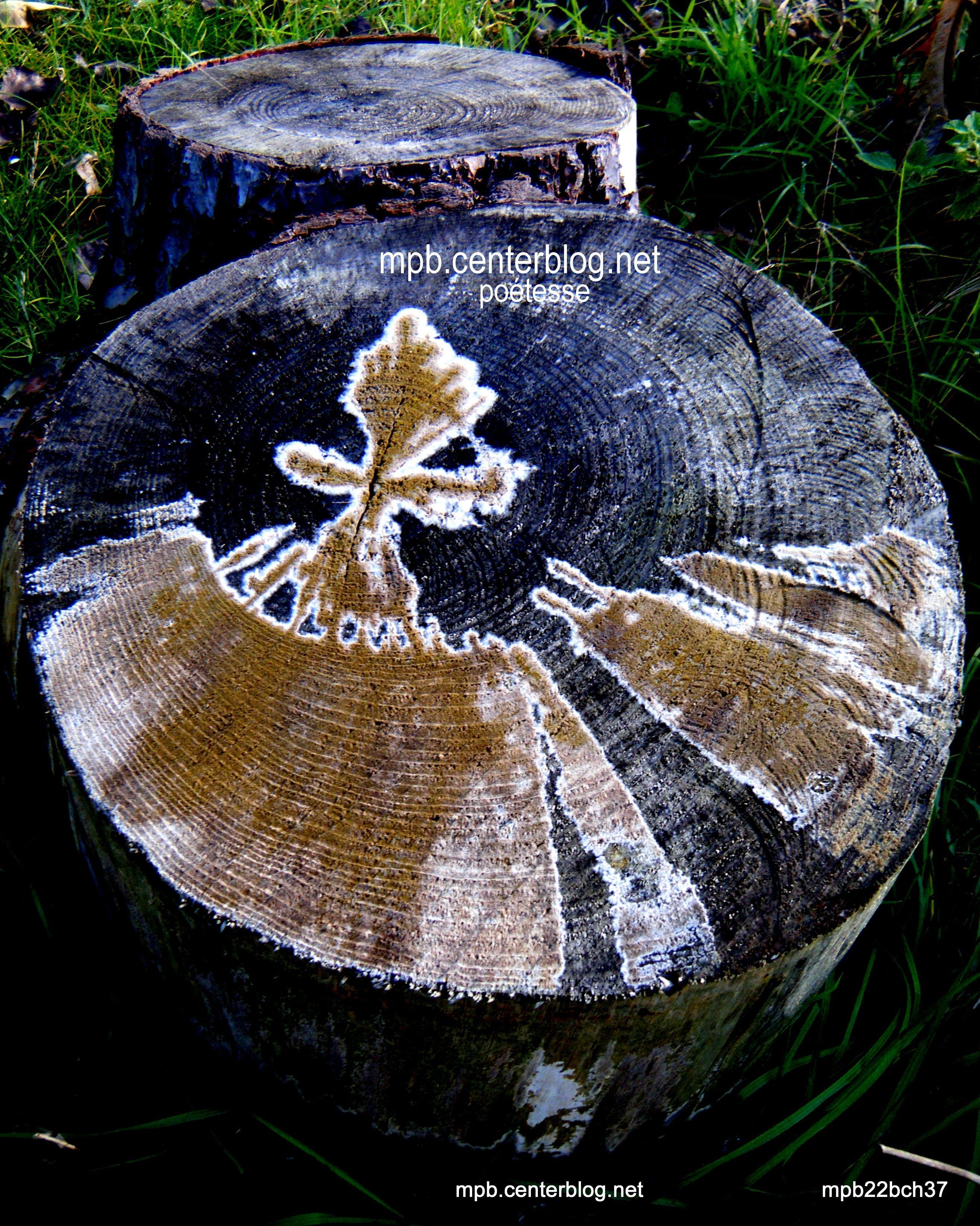 Une chaise repliée ne craignant pas l'orage, reposait sur la souche pourtant hier, sans un message; quand soudain, mon regard se fige, devant ce dessin talentueux façonné par quelle ivresse de vivre?