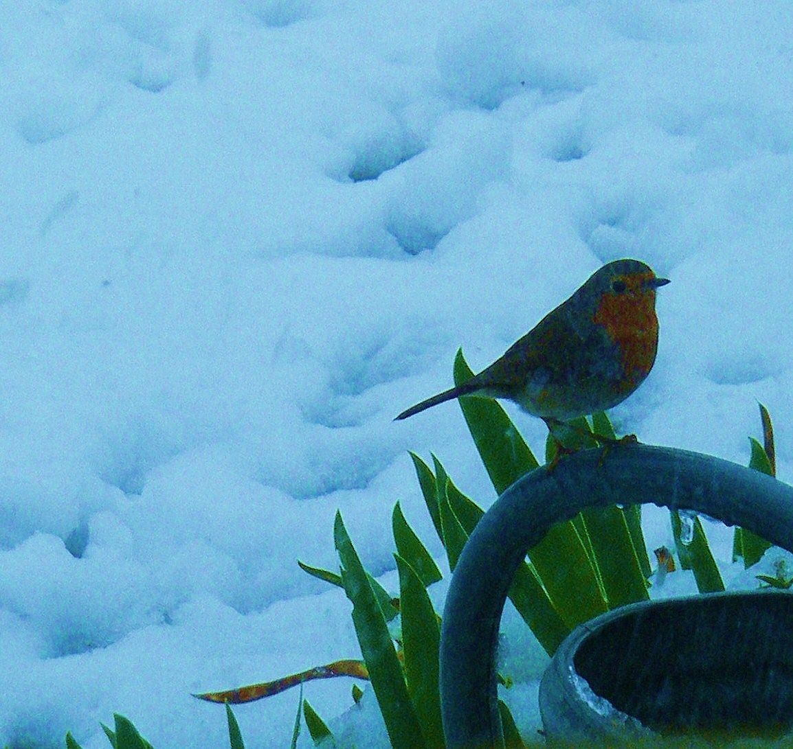 L'ami de nos journées s'envole, se pose dans la clarté d'argent, perlée d'un linceul de chant, froid, mais si merveilleux pour s'éclabousser un instant dans sa fourrure miroitante d'un nettoyage désiré de son plumage orangé.